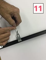 This is step-by-step guide to attaching your hanging kit to your side-loading metal frame. (Please note the hanging kit and instructions for wood frames are different.)