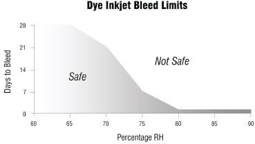 Figure 1. Dye Inkjet bleed limits on an inkjet print at 25°C (77°F)